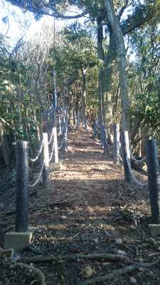 ここで道が二手に分かれていて、標識がないので一瞬迷いますが、この仏像の前を通って左方面へいくとすぐに片瀬山に登る遊歩道がありますが、現在通行止めです。