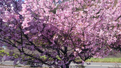 河津町と東伊豆町の堺に生えている河津桜が満開でした。